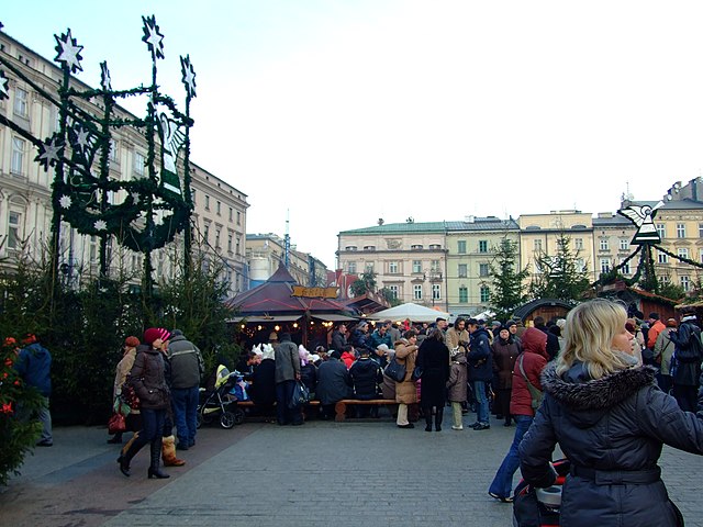 Karácsonyi vásár Krakkóban. A fotó forrása: wikimedia commons