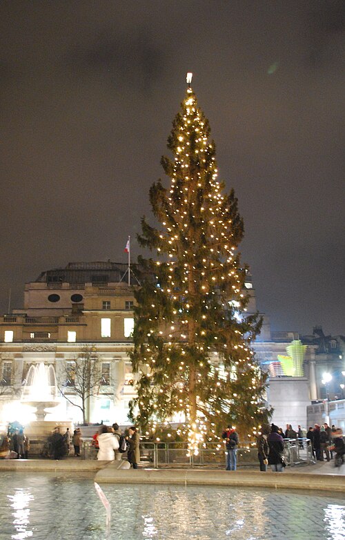 1947 óta minden évben különös küldemény érkezik Nagy-Britanniába. A norvégok egy óriási fenyőt küldenek, amelyet a Trafalgar téren állítanak fel évente, és minden év decemberének első csütörtökén 18.00 órakor gyújtják meg rajta a fényeket: londoniak ezrei gyűlnek össze, hogy részt vegyenek ezen a hagyományos ünnepen. Norvégia ugyanis a mai napig hálás Nagy-Britanniának a második világháborúban nyújtott segítségéért, ezért lepi meg a briteket ezzel a különös ajándékkal. A fa a hála szimbóluma Nagy-Britanniának, amiért a britek segítették a norvég király csapatát, amikor szüksége volt rá.