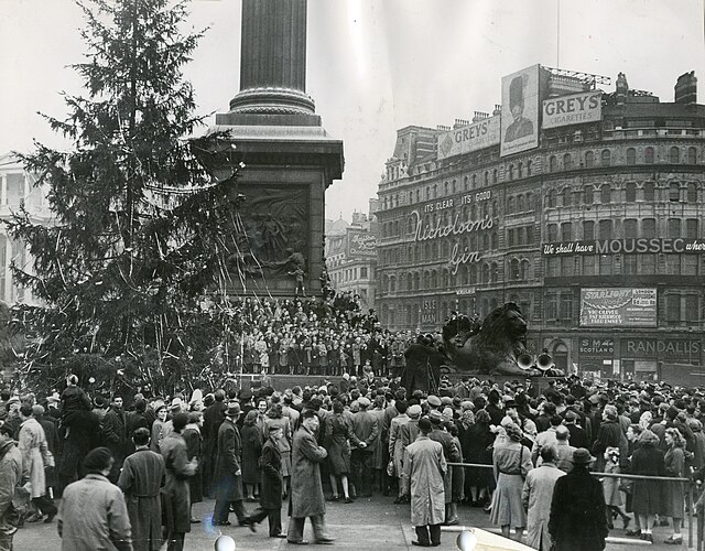 1947. a norvégok először küldtek Londonba fát. Forrás: wikimedia commons